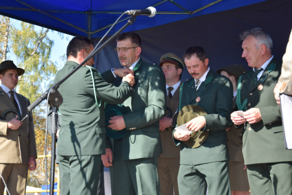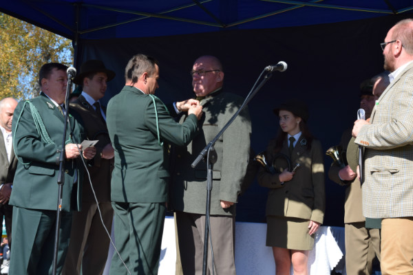 W tym czasie na scenie wręczono odznaczenia myśliwym. Złoty medal „Zasłużony dla Polskiego Związku Łowieckiego” przyznany przez Kapitułę Odznaczeń Łowieckich w Warszawie otrzymał Stanisław Strączyński. Medale „Zasłużony dla Łowiectwa Kielecczyzny” nadane przez Okręgową Radę Łowiecką w Kielcach trafiły do:
