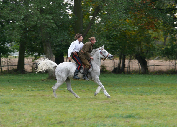 Kolejnym widowiskowym punktem programu był pokaz władania białą bronią w wykonaniu Kieleckiego Ochotniczego Szwadronu Kawalerii im. 13 Pułku Ułanów Wileńskich oraz pokaz dżygitówki Huberta Jedliczki.