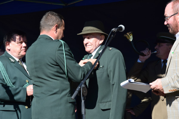W tym czasie na scenie wręczono odznaczenia myśliwym. Złoty medal „Zasłużony dla Polskiego Związku Łowieckiego” przyznany przez Kapitułę Odznaczeń Łowieckich w Warszawie otrzymał Stanisław Strączyński. Medale „Zasłużony dla Łowiectwa Kielecczyzny” nadane przez Okręgową Radę Łowiecką w Kielcach trafiły do: