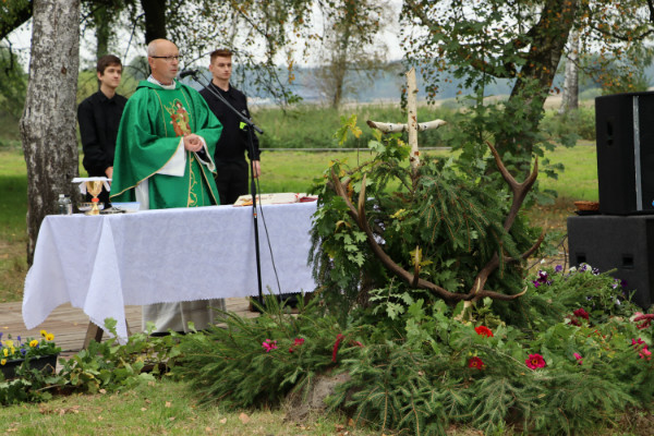 Uroczystość rozpoczęła polowa msza święta, którą odprawił ks. kanonik Leszek Dziwosz – Proboszcz Parafii p.w. bł. ks. J. Pawłowskiego z Grona 108 Męczenników we Włoszczowie. Oprawę mszy zapewnił chór „Niezastąpieni” oraz Zespół Francuskiej Muzyki Myśliwskiej „Trompes de Pologne”.