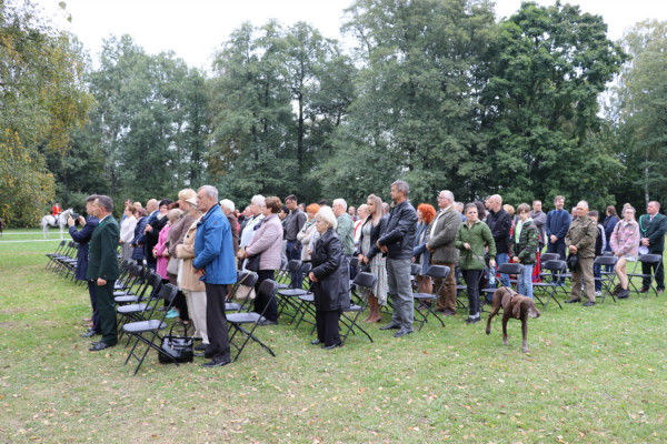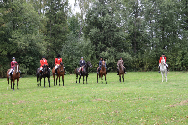 Następnie odbyła się odprawa jeźdźców. Starym zwyczajem uczestnicy pogoni wypili „strzemiennego” i udali się w teren rozprężyć konie, po czym odbył się bieg myśliwski.
