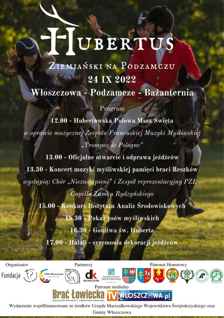 W dniu 24 września 2022 r. na Podzamczu we Włoszczowie odbyła się VII edycja Hubertusa Ziemiańskiego na Podzamczu. Hubertus Ziemiański to wydarzenie będące wspólnym świętem jeźdźców, myśliwych i leśników – wszystkich tych, którym patronuje św. Hubert. Odbywający się rokrocznie od 2015 r. Hubertus na Podzamczu nawiązuje do tradycji słynnych polowań konnych z chartami organizowanych w tym miejscu przed stu laty przez Sergiusza Niemojewskiego.