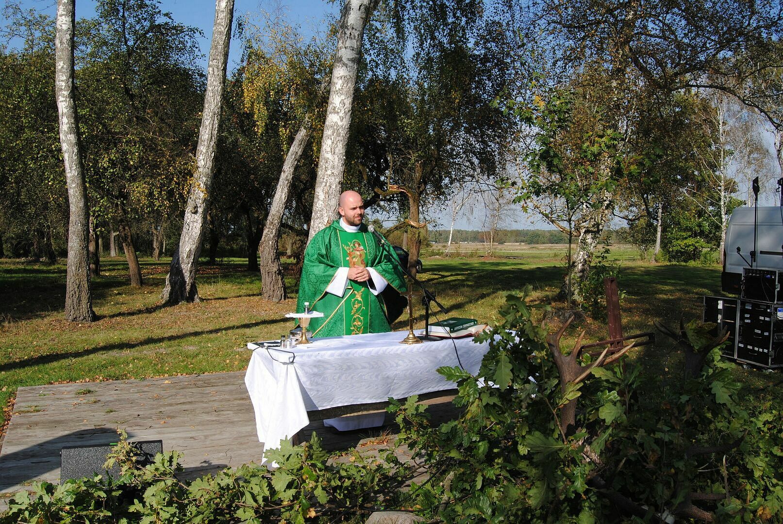 Uroczystość rozpoczęła się o godzinie 11:00 Hubertowską Polową Mszą Świętą w intencji jeźdźców, myśliwych i leśników, w oprawie muzycznej Zespołu Francuskiej Muzyki Myśliwskiej „Trompes de Pologne”. Zespół ten, powstały w 2000 roku, jest jedyną w kraju formacją prezentującą tradycyjną francuską muzykę myśliwską, wywodzącą się z dawnych konnych polowań par force.