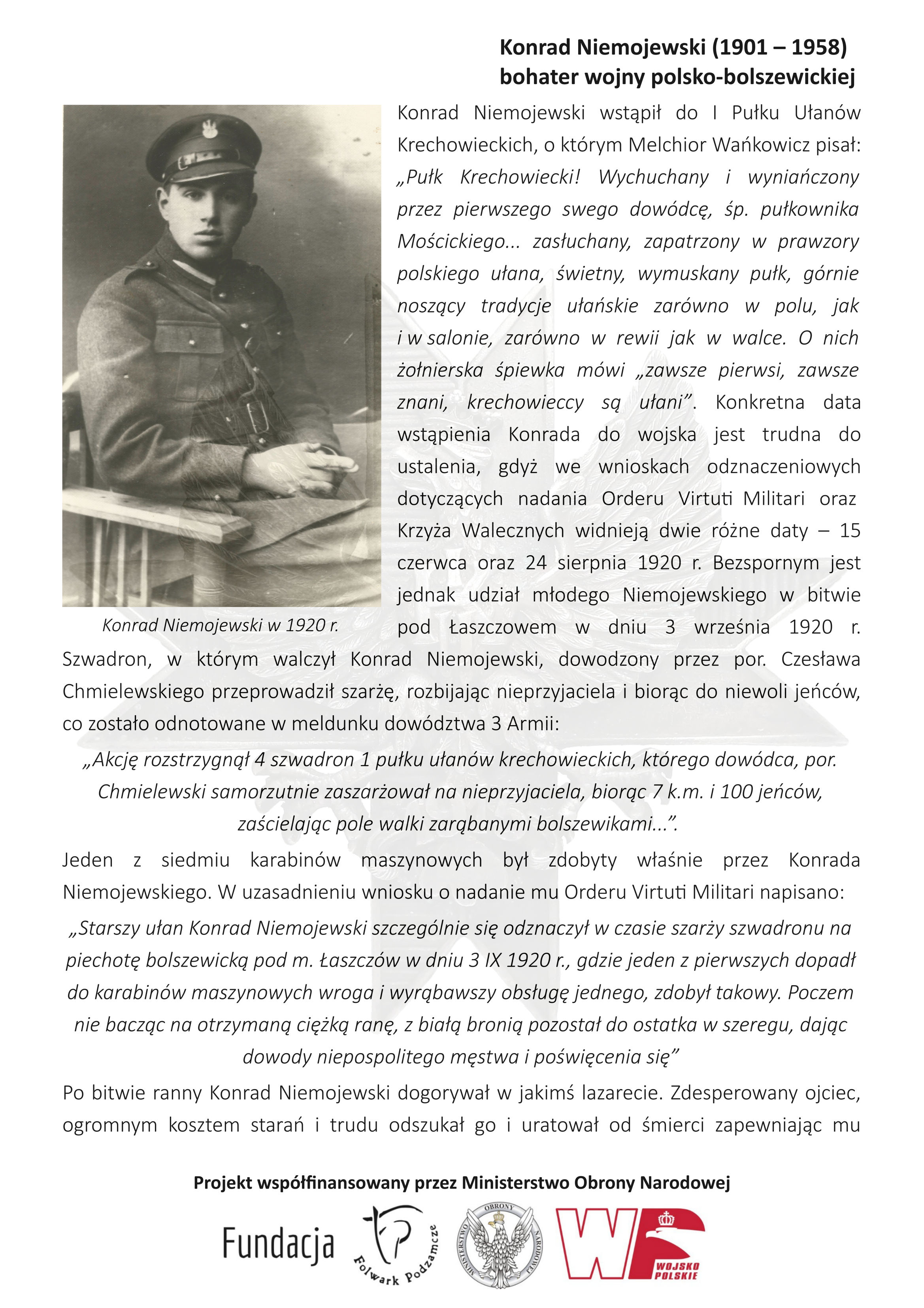 - Tadeusz Jedliczka – „Konrad Niemojewski (1901–1958), bohater wojny polsko-bolszewickiej odznaczony Krzyżem Walecznych i Orderem Virtuti Militari”