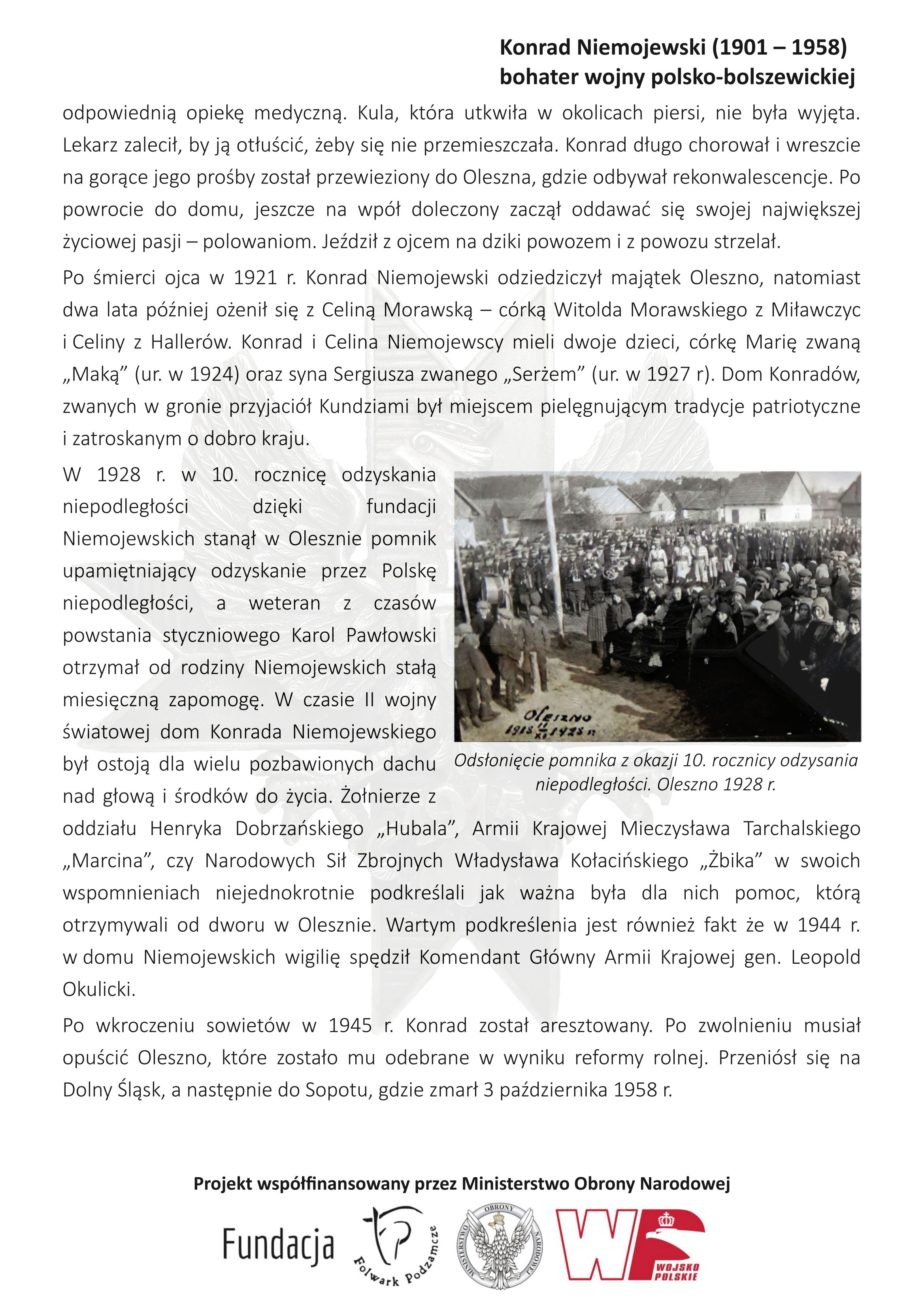 Spotkanie poświęcone Konradowi Niemojewskiemu (1901 – 1958) – bohaterowi wojny polsko-bolszewickiej.